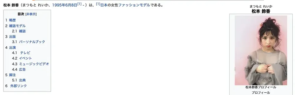 七ツ森りり(Nanatsumori Riri)为日菲混学,原名松本铃香,是知名时尚杂志《CHOKi CHOKi girls》的专属。她曾在朝日电视台音乐节目《musicる TV》担任固定主持人,并参与多支广告及音乐视频的拍摄,艺人身份公开且资料丰富。